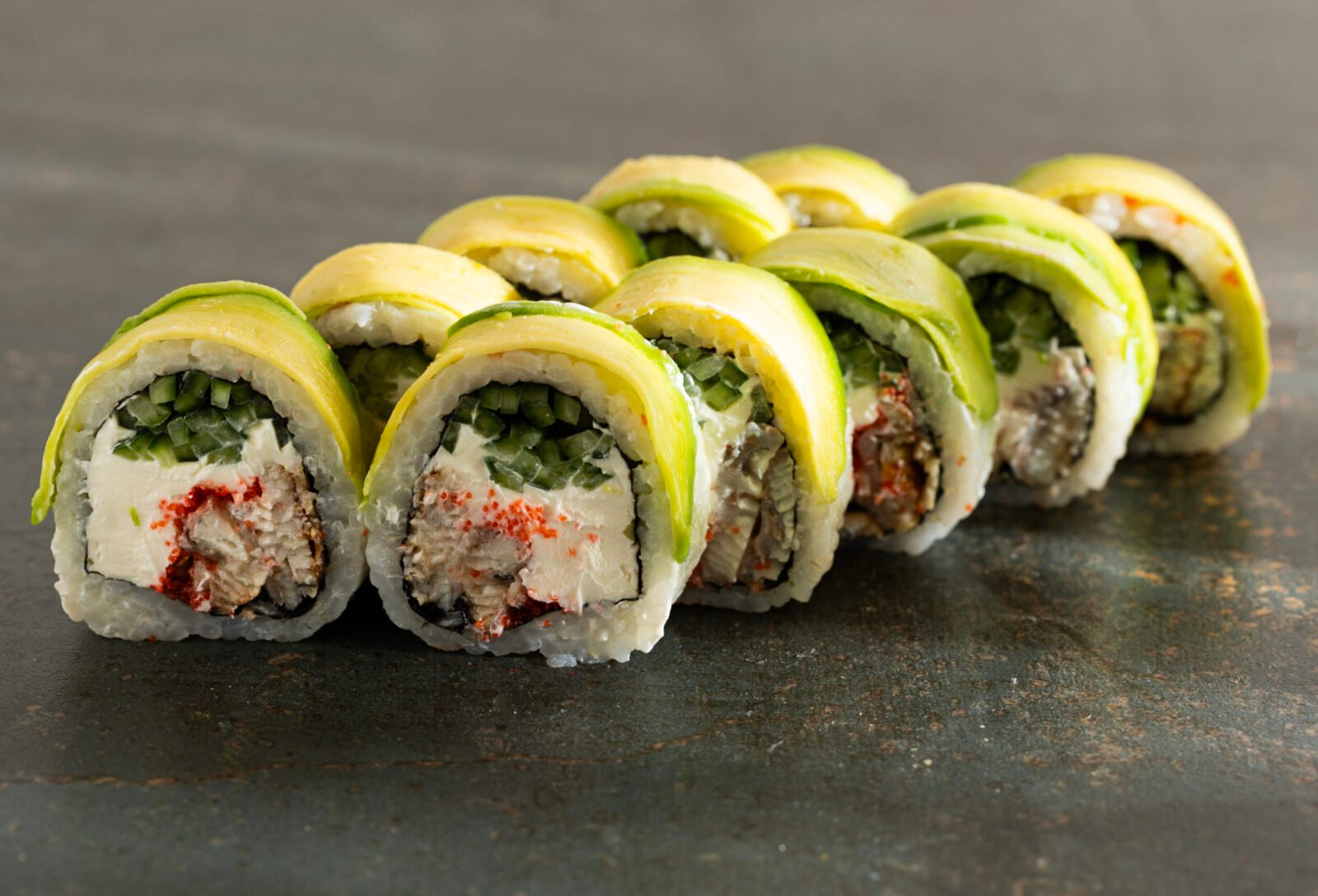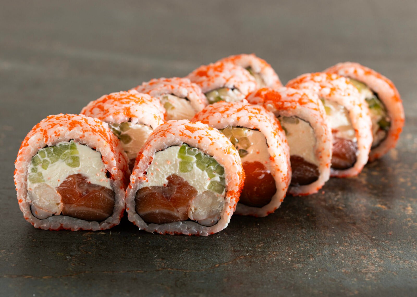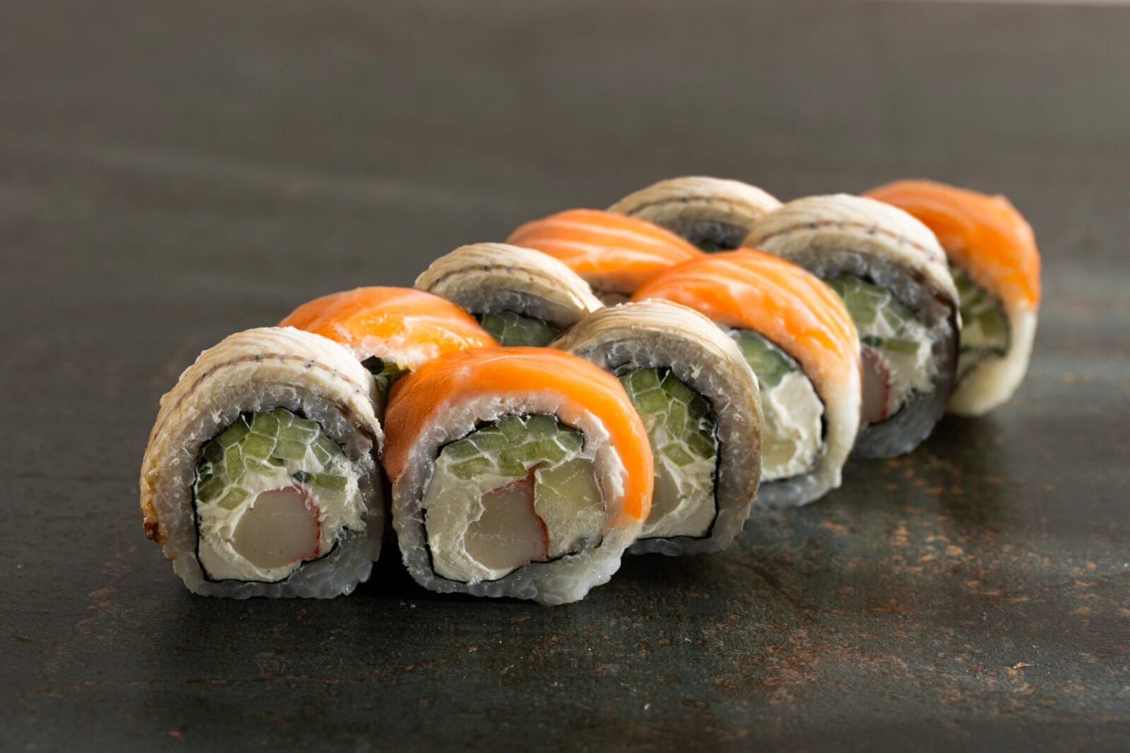 Grilled salmon,Philadelphia cheese,cucumber,eel