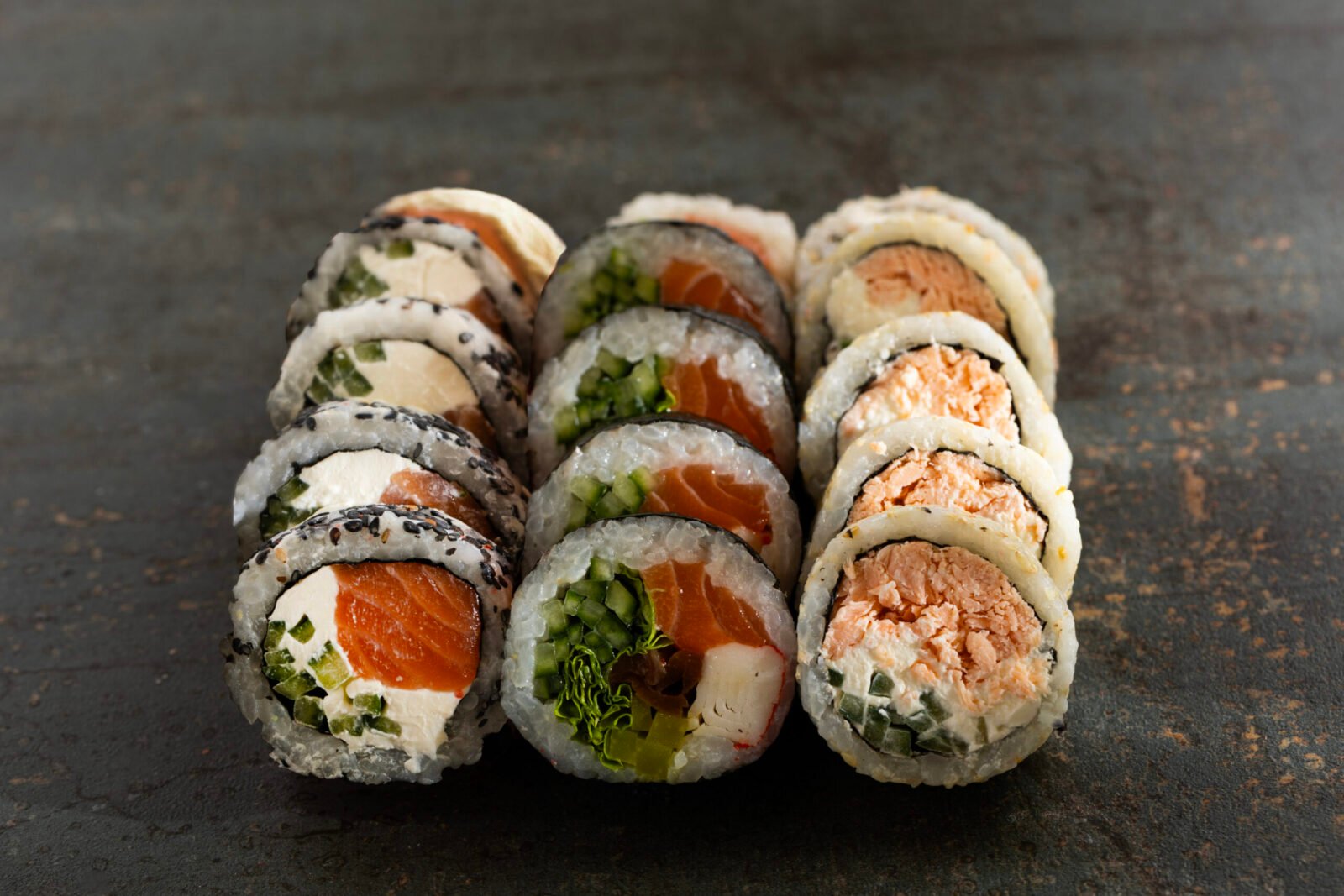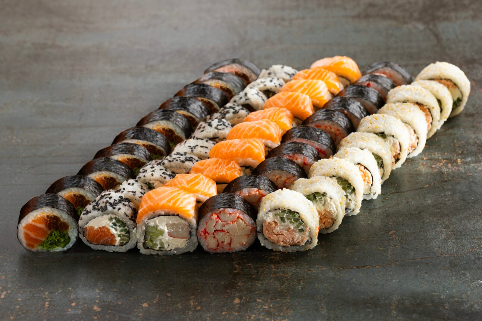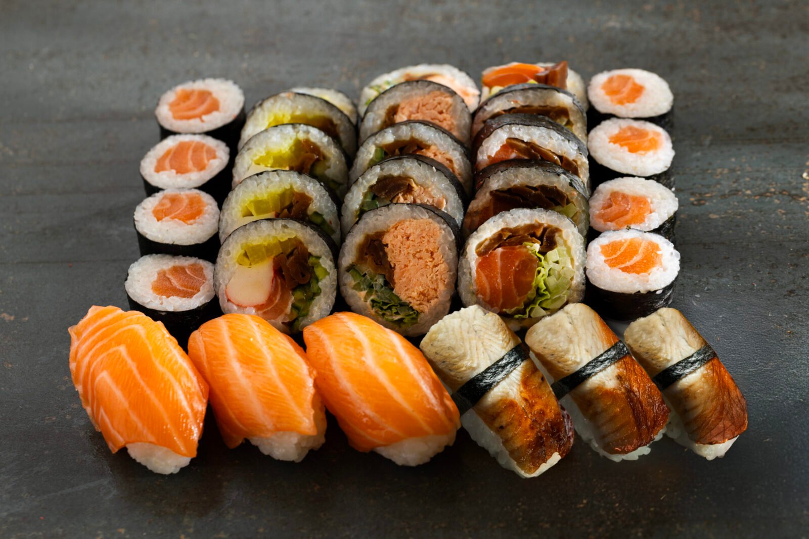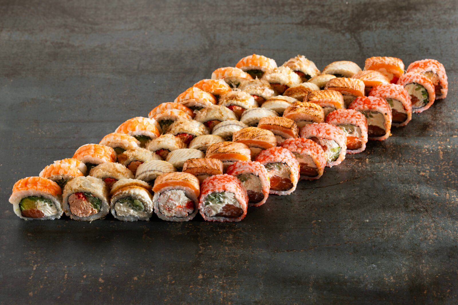 Grill Cheddar 10pcs, Philadelphia Classic 10pcs, California Gold 10pcs, Sake Maki 8pcs, Sake Grill Maki 8pcs, Nigiri Salmon 4pcs, Nigiri Fired Salmon 4pcs.
