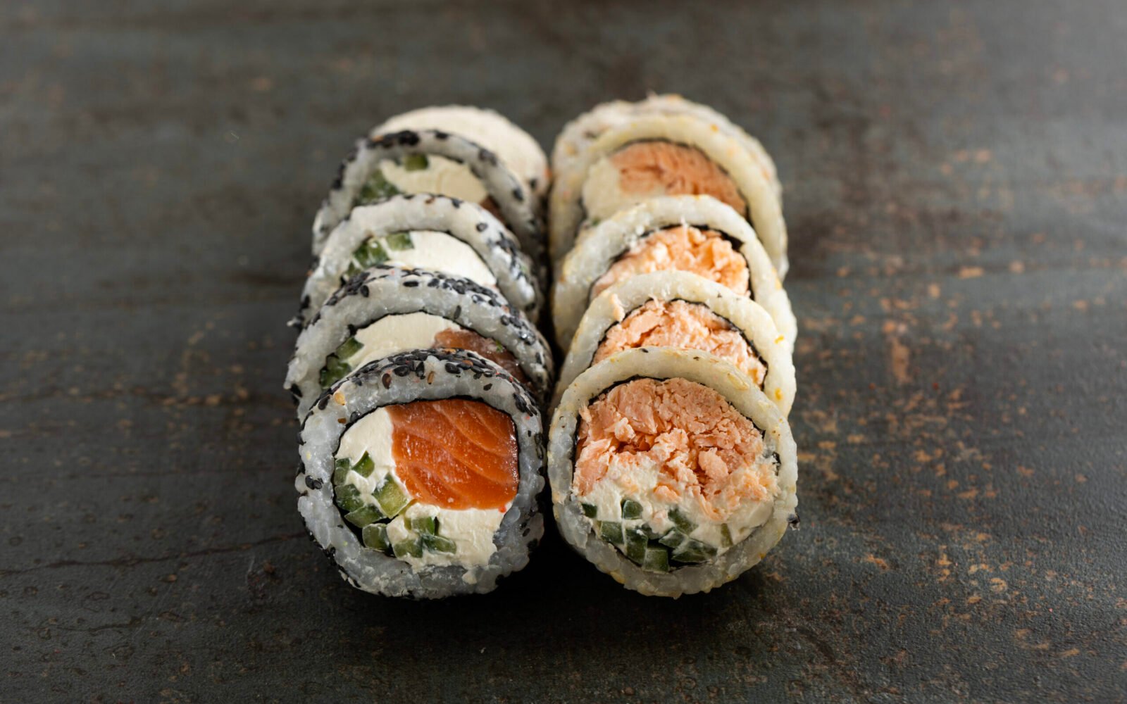 spicy sake 10 pcs, philadelphia 10 pcs, california gold 10 pcs, crab spicy 10 pcs, philadelphia grill 10 pcs
