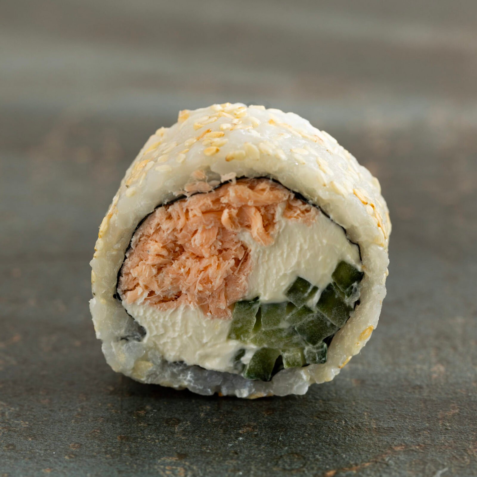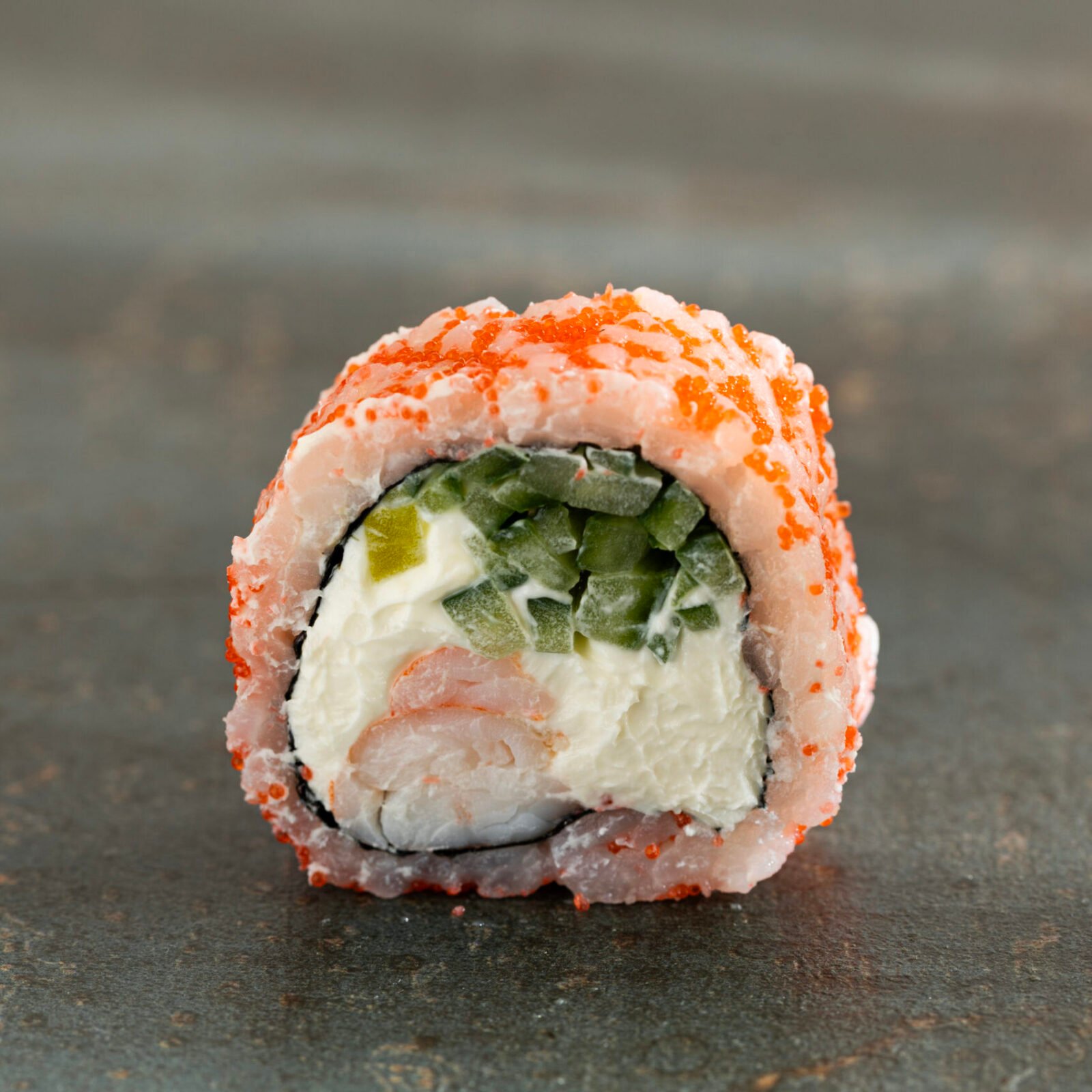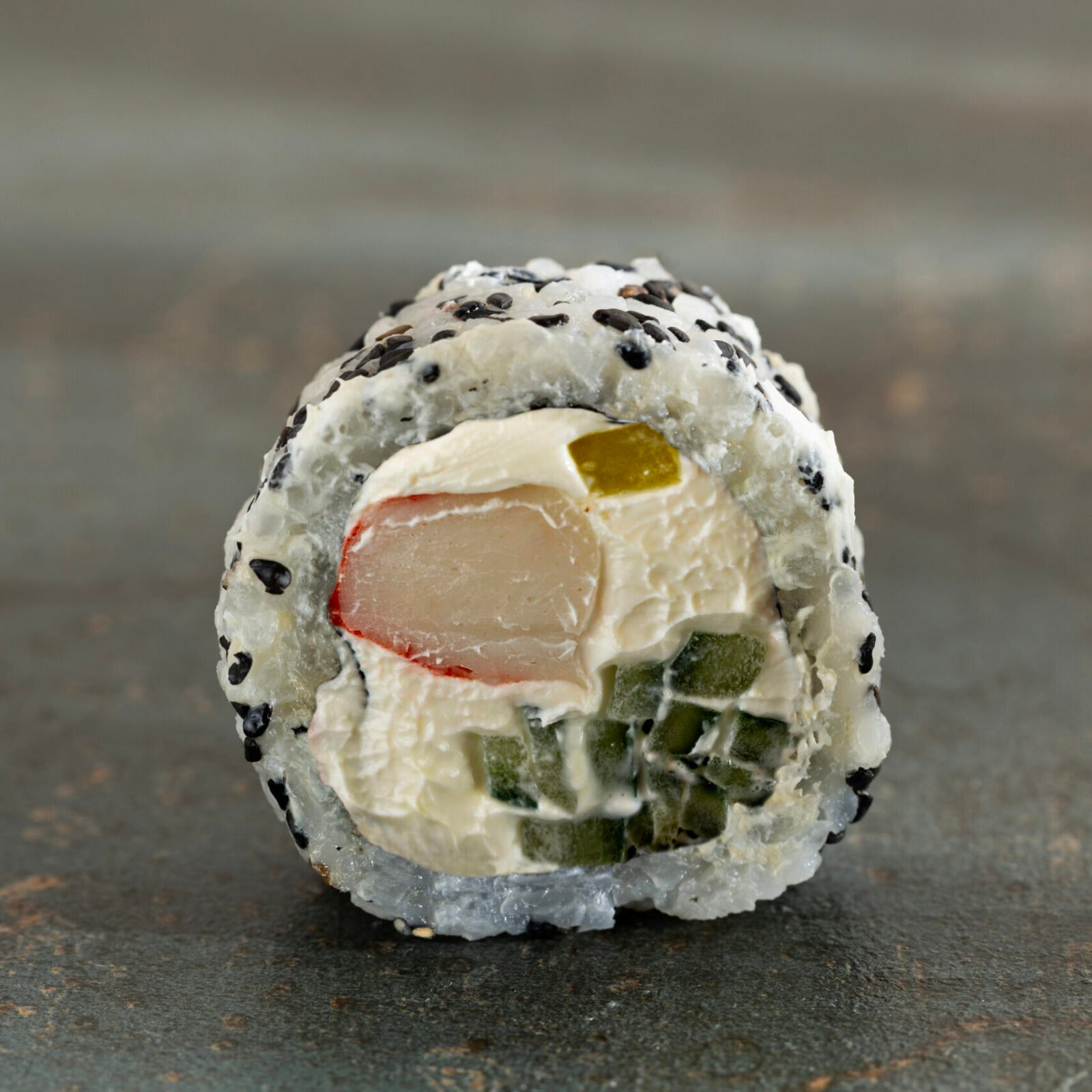 shrimp, cheese, cucumber, oschinko, tobiko/sesame