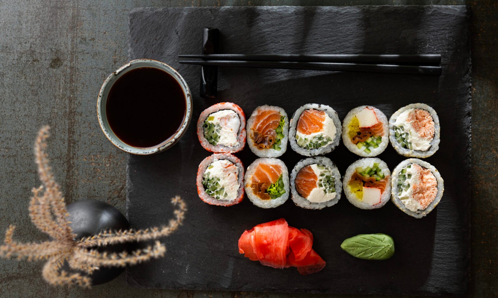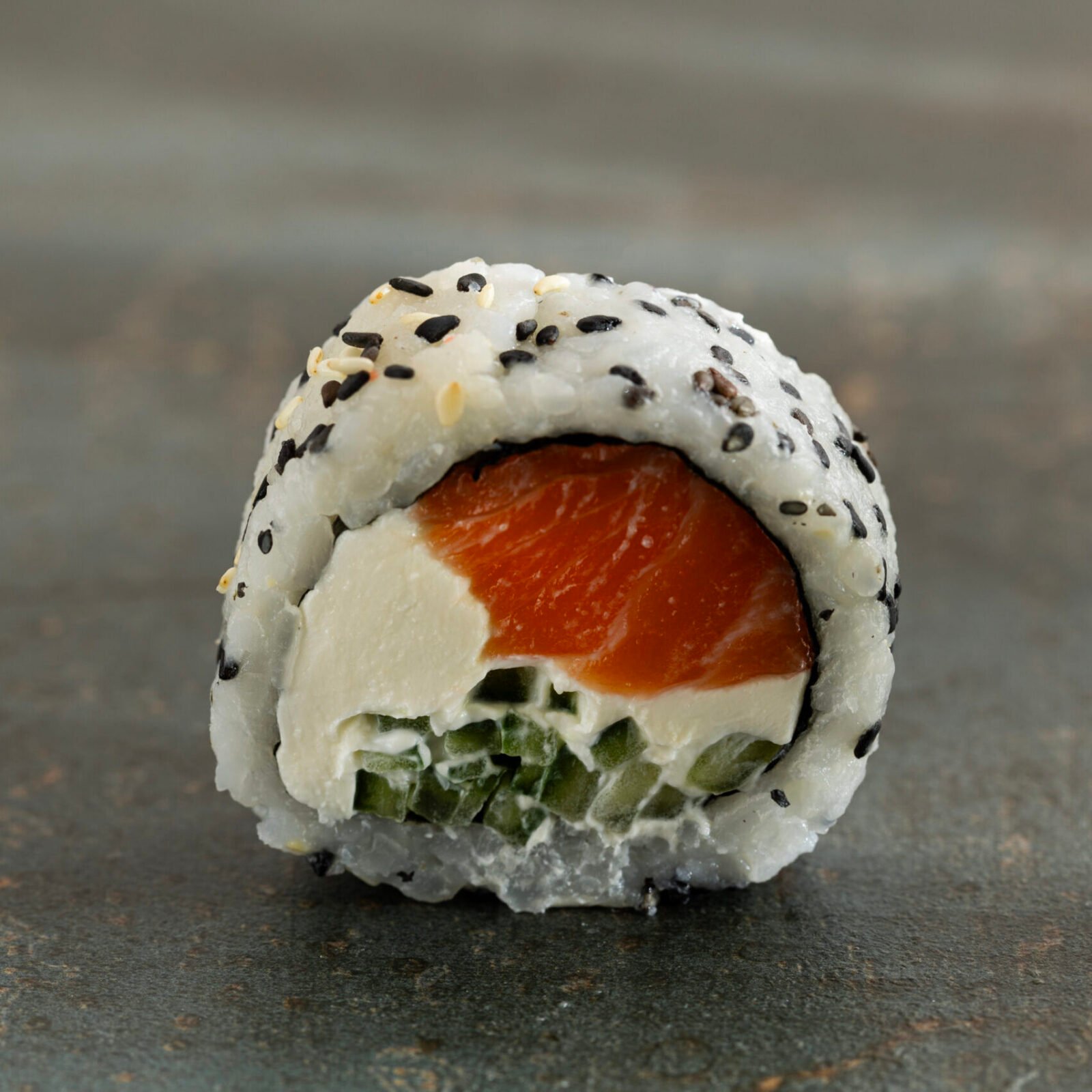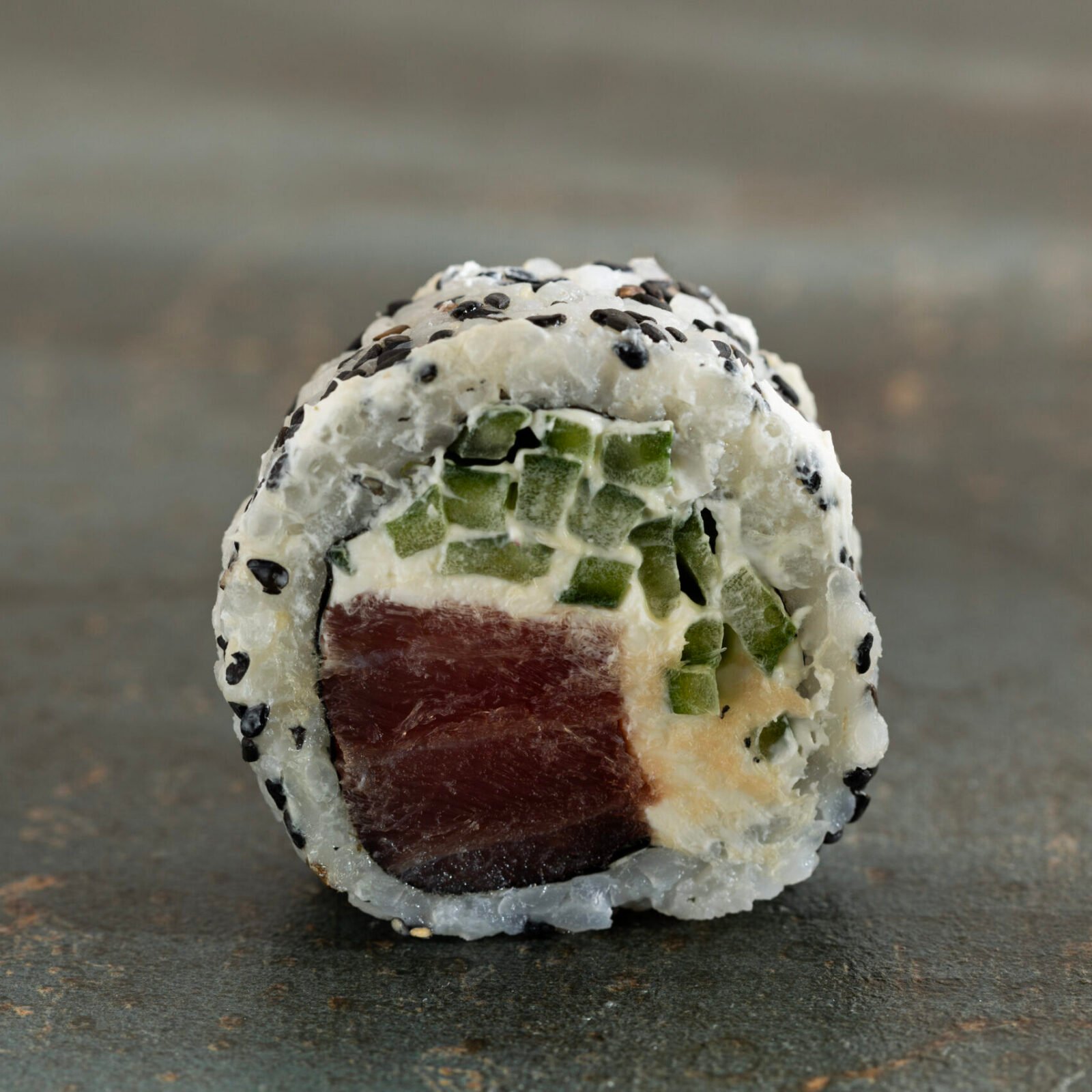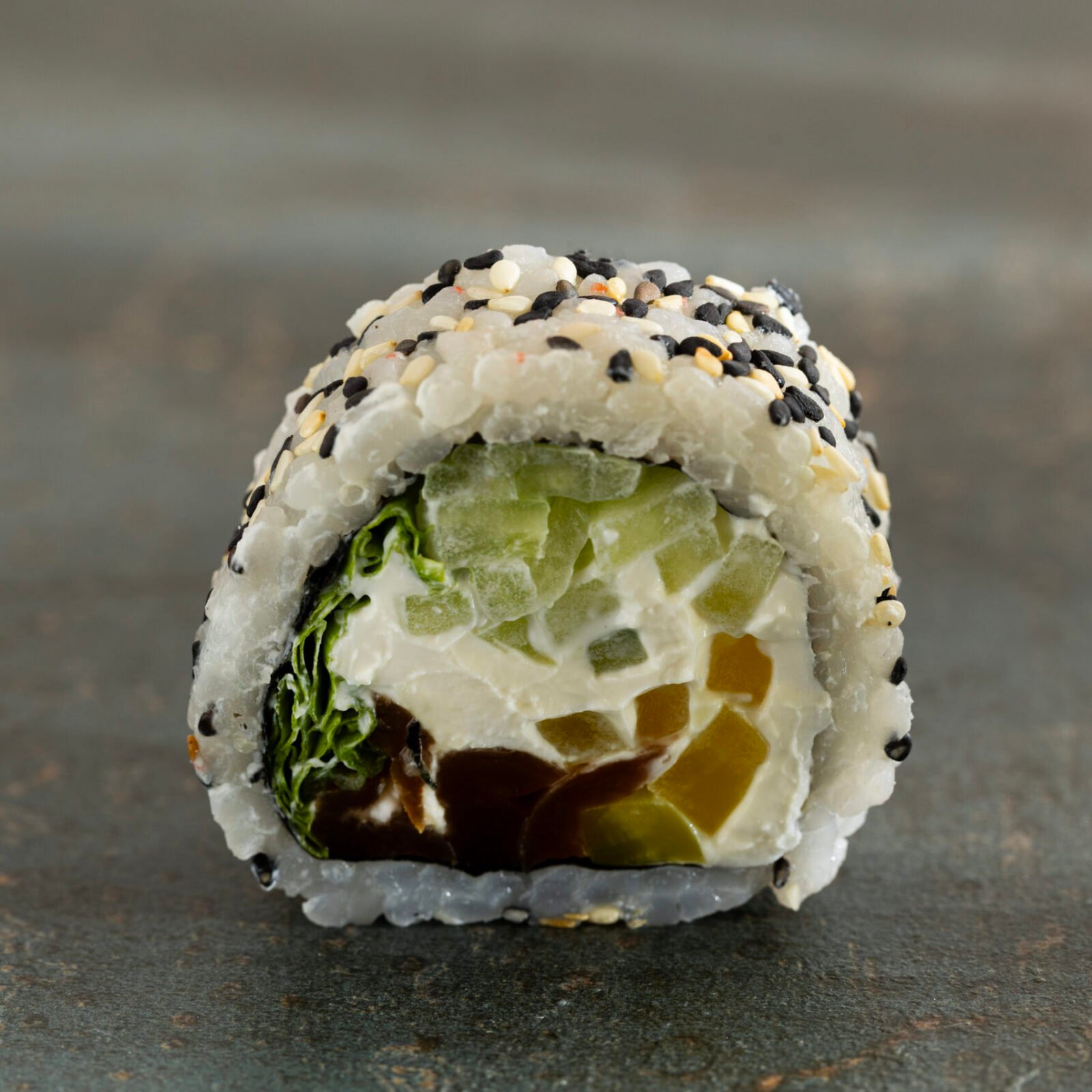 shrimp, cheese, cucumber, oschinko, tobiko/sesame